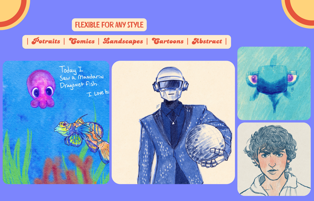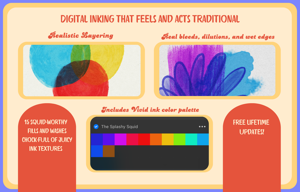 - A color palette for Intensifying colors with each layer, mimicking real-life ink